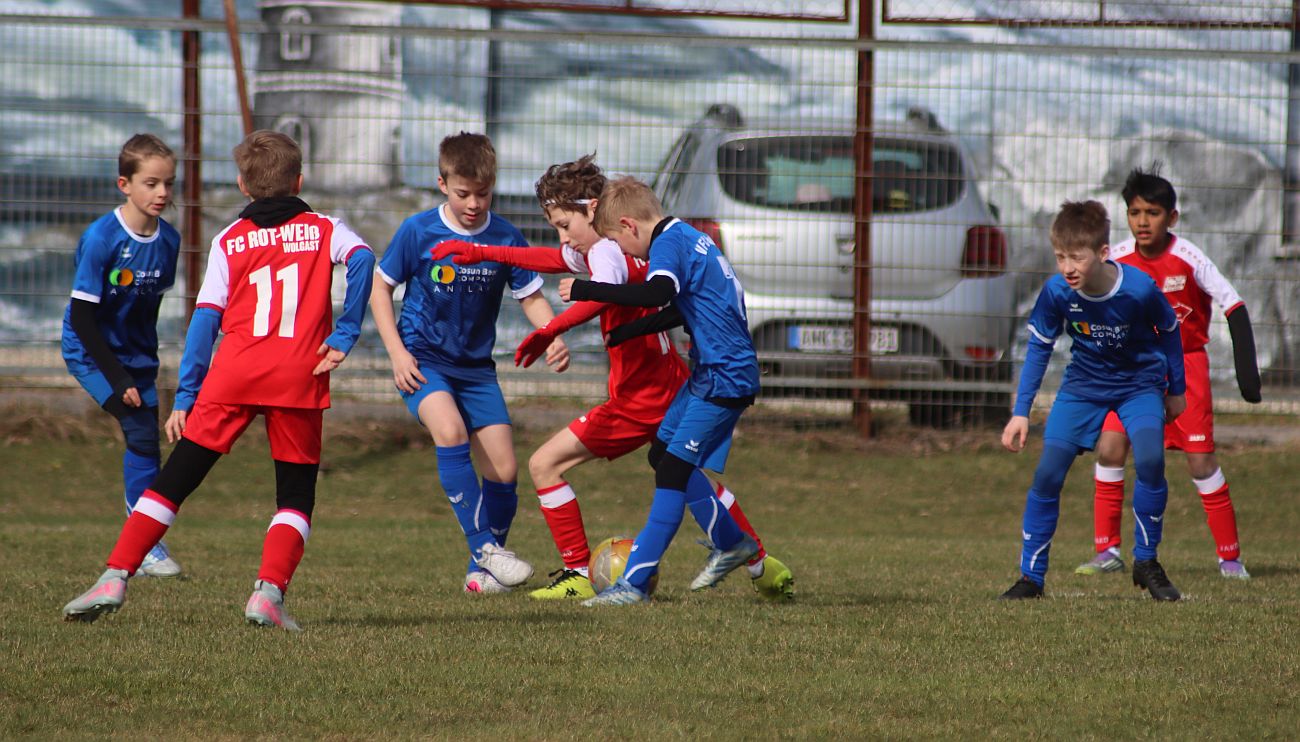 Einen munteren Testkick auf Augenhöhe haben sich unsere E1-Junioren am gestrigen Vormittag auf eigenem Rasen mit den gleichaltrigen Talenten des FC Rot-Weiß Wolgast I geliefert. Am Ende setzten sich die Schützlinge von Trainer David Schulz mit 6:4 durch.