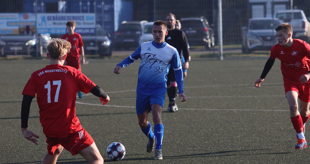 Für reichlich Spektakel haben am sechsten Spieltag der Landesliga-Saison die B-Junioren unseres Vereins sorgt. Nach einer durchwachsenen ersten Halbzeit lagen sie auf eigenem Rasen gegen die TSG Neustrelitz zur Pause mit 1:3 zurück – doch nach dem Seitenwechsel zeigten sie Moral, drehten die Partie eindrucksvoll und feierten am Ende einen 4:3-Heimsieg.