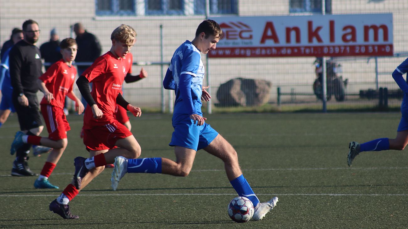 Weniger glücklich verlief das Wochenende für unsere C1-Junioren: Sie verloren das Landesliga-Derby beim FC Rot-Weiß Wolgast knapp mit 1:2 (0:1). Den Anschlusstreffer erzielte Elias Birth kurz vor dem Schlusspfiff.
