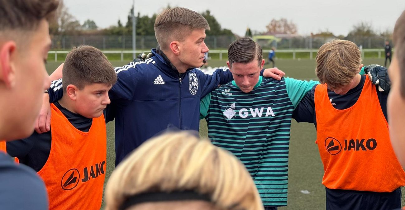 Trotz der am Ende deutlichen Niederlage zeigten unsere Kicker vor allem im ersten Durchgang eine überzeugende Leistung. „In der ersten Halbzeit ist es uns gelungen, das Spiel der Greifswalder mit energisch geführten Zweikämpfen und einer kompakten Defensivarbeit weitgehend zu unterbinden, sodass sie nur aus der Distanz zu Abschlüssen kamen“, erklärten die Trainer Nico Steffenhagen und Carl Tubandt nach dem Spiel. Nach dem Seitenwechsel machte sich dann jedoch der Kräfteverschleiß bemerkbar. „In der zweiten Halbzeit fehlte uns die Kondition, um weiterhin alle Räume zu schließen, was letztlich zu den Gegentoren geführt hat“, so das Trainerduo weiter. Trotz des Ergebnisses zeigten sich die beiden zufrieden mit der Einstellung ihres Teams: „Die Jungs haben sich zu keinem Zeitpunkt aufgegeben und versucht, alles umzusetzen, was wir uns vorgenommen hatten. Auf diese Leistung lässt sich aufbauen.“