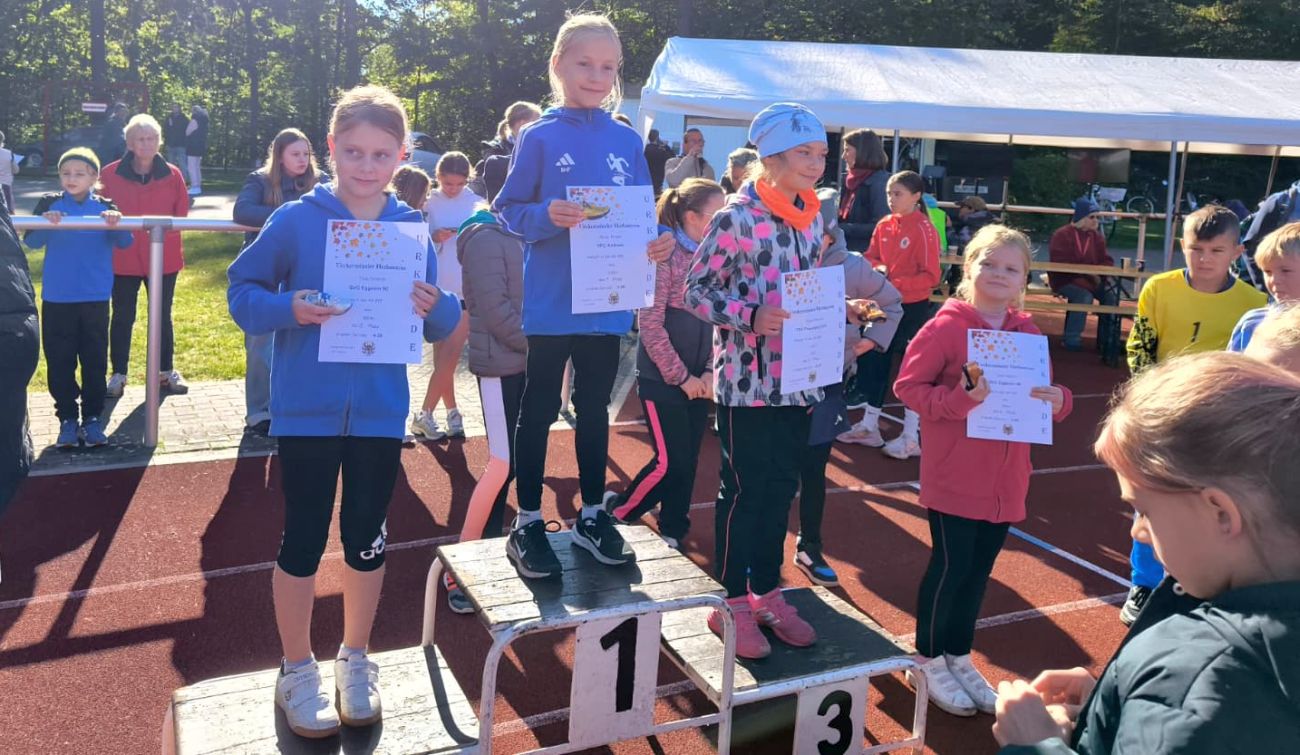 Ebenfalls stark unterwegs war Felix Rose, der in der WK U8 einen sehr guten fünften Platz belegte. Über die längere 800-Meter-Strecke überzeugten zwei weitere Talente: Mathilda Österreich (WK U9) und Ronja Pieper (WK U10) liefen jeweils als Erste ins Ziel und feierten Klassensiege. In der MK U9 belegten Henri Dreier (4.), Philipp Blackburn (5.), Max Wengler (6.), Anton Bretzke (9.) und Ben Knop (10.) weitere starke Platzierungen. In der MK U11 lief Luca Knop auf Rang drei. Besonders erfreulich: Er und Henri sind eigentlich vor allem als Fußballer aktiv und konnten in Ueckermünde ihr sportliches Talent auch in der Leichtathletik zeigen. Bei den Mädchen (WKU11) holte sich Anni Dreier ebenfalls einen Podestplatz mit Rang drei.