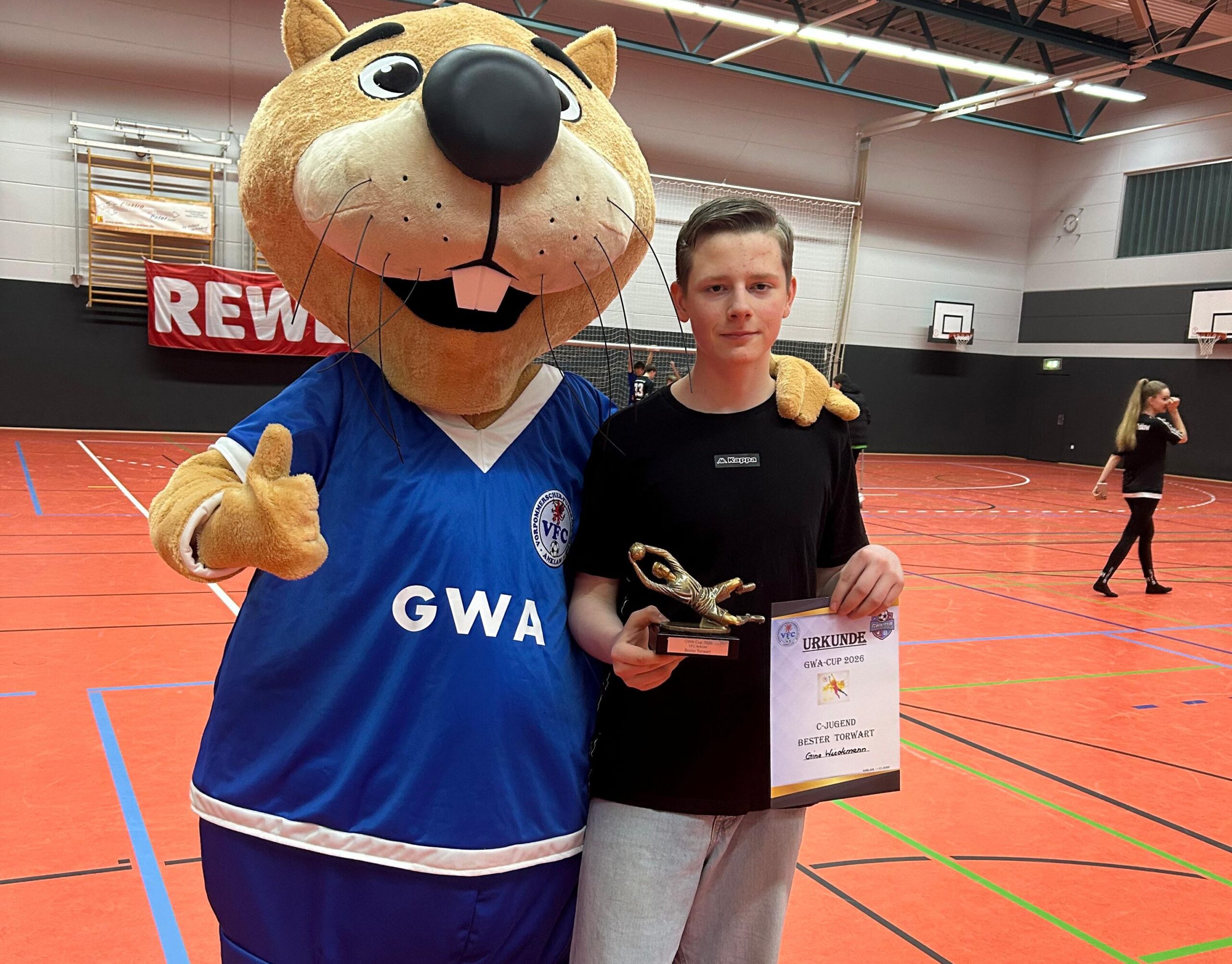 Bei der Siegerehrung durfte sich Ben-Lares Frost (SV Warnemünde) über gleich zwei Auszeichnungen freuen: Er wurde als bester Spieler und bester Torschütze geehrt. Den Pokal für den besten Torhüter erhielt sich Gino Wiedemann aus unserem zweiten Team.