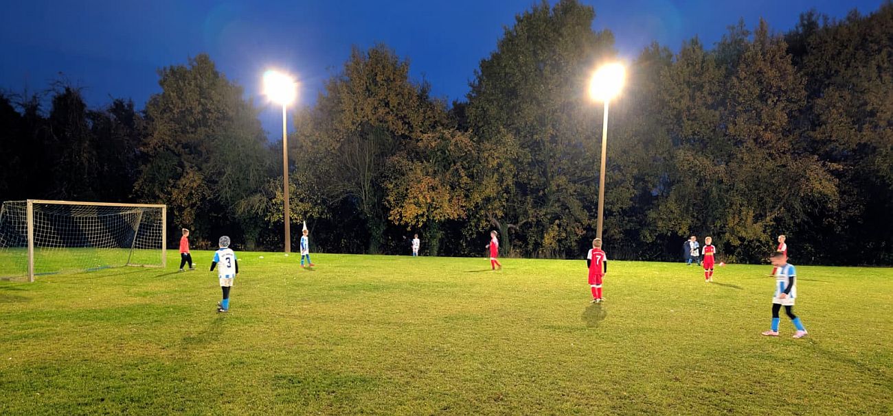 Selbst der einsetzende Nieselregen konnte die Stimmung nicht trüben – im Gegenteil: unter dem schimmernden Flutlicht glitzerten die Regentropfen wie kleine Spuklichter, und die Talente gaben weiter alles. „Nach einem langen und kräftezehrenden Tag traten unsere Jungs zurecht stolz die Rückreise an“, fasste unser Nachwuchs-Coach den Tag treffend zusammen. Eine Pause im Fastfood-Restaurant durfte da natürlich nicht fehlen, schließlich hatten sich alle ein echtes Belohnungsmenü verdient. Punkt Mitternacht – passenderweise zur Geisterstunde – erreichte das Team wieder Anklam.