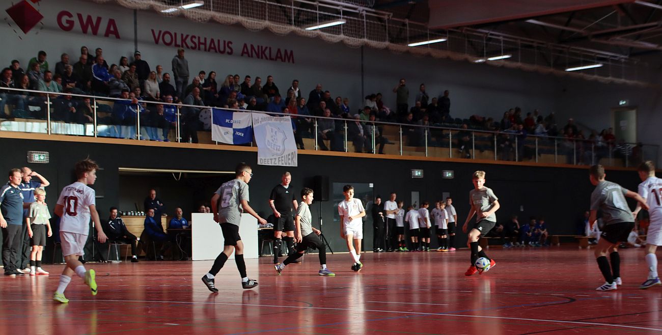 Der Siegerpokal ging im Volkshaus an die U12-Junioren des F.C. Hansa Rostock. Bereits in der Vorrunde unterstrichen sie ihre Favoritenrolle und zogen souverän ins Halbfinale ein. Ebenfalls für die Vorschlussrunde qualifizierte sich der BFC Dynamo. In der Gruppe B dominierte der 1. FC Neubrandenburg 04 das Geschehen und blieb ebenfalls ohne Niederlage. Dahinter folgte der FC Deetz, der sich ebenso für das Halbfinale qualifizierte. In den Halbfinalspielen bestätigten die beiden Gruppensieger ihre starke Form. Der F.C. Hansa setzte sich deutlich mit 5:0 gegen den FC Deetz durch, während der 1. FC Neubrandenburg 04 den BFC Dynamo mit 2:0 bezwang. Im Spiel um Platz drei behielt anschließend der FC Deetz gegen die Berliner im Neunmeterschießen mit 3:2 die Oberhand. Das Finale entwickelte sich zu einem intensiven Endspiel, das mit einem knappen 2:1-Erfolg der Rostocker gegen den FCN endete.