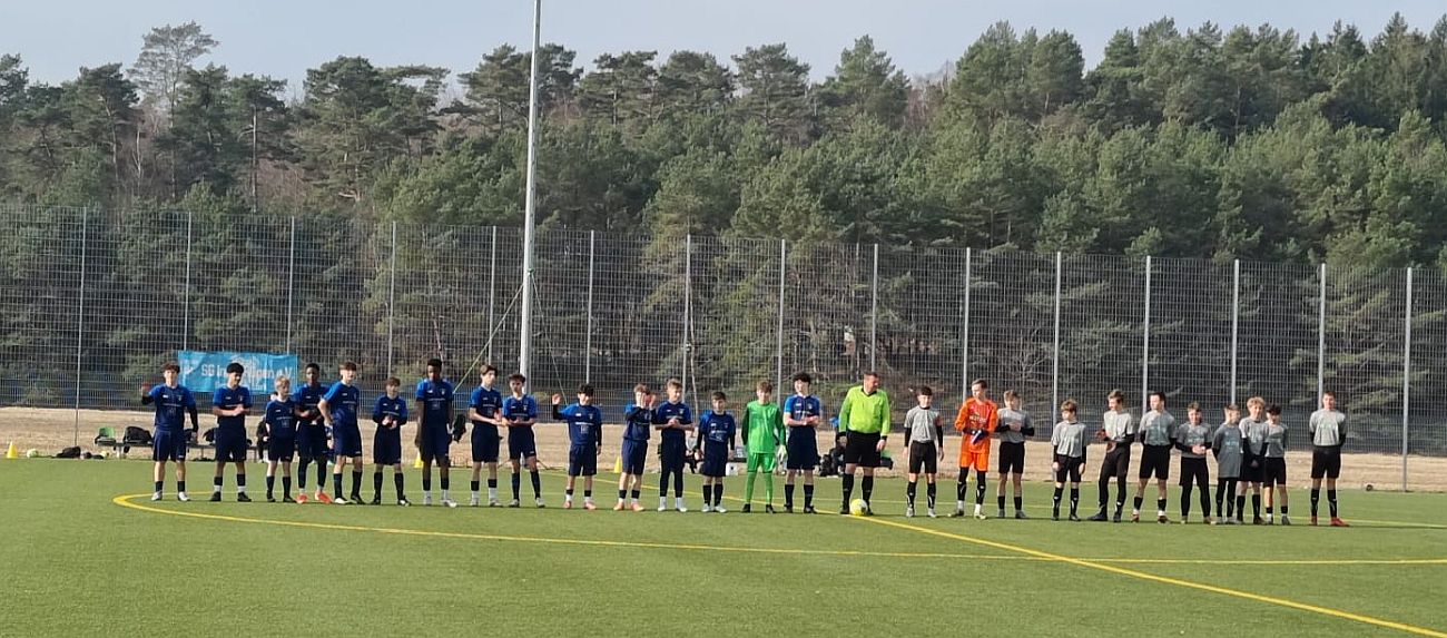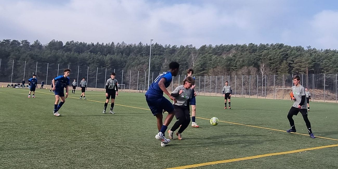 Die erste Hälfte war von vielen Zweikämpfen geprägt und spielte sich größtenteils im Mittelfeld ab. Beide Mannschaften schenkten sich nichts, klare Torchancen waren zunächst rar. Die beste Möglichkeit für unsere Elf hatte Matti Piehl in der 20. Minute, als sein Schuss nur am Pfosten landete. Nach dem Seitenwechsel nahm die Partie dann richtig Fahrt auf. In der 37. Minute gingen die Gastgeber mit 1:0 in Führung. Doch die Antwort unserer Mannschaft ließ nicht lange auf sich warten: Linus Denz traf nur drei Minuten später zum 1:1-Ausgleich (40.). Auch auf den erneuten Führungstreffer der Insulaner in der 58. Minute hatten die Schützlinge von Trainer Lukas Behm die passende Reaktion. Matti Piehl (60.) und erneut Linus Denz (62.) drehten mit ihren Treffern das Spiel. Doch die SG Insel Rügen schlug noch einmal zurück und glich nur eine Minute später zum 3:3 aus. Die Entscheidung fiel schließlich in der dritten Minute der Nachspielzeit. Nach einem Strafstoß übernahm Kapitän Matti Piehl Verantwortung und verwandelte den Elfmeter sicher zum umjubelten 4:3-Siegtreffer.