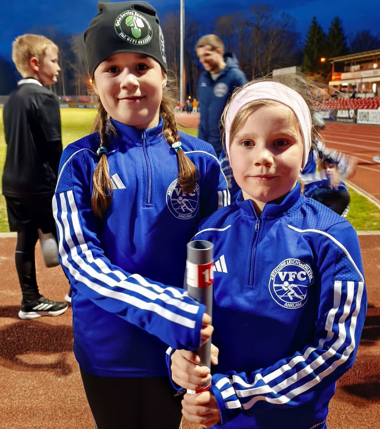 Bereits wenige Tage zuvor hatten unsere Talente am Stunden- beziehungsweise Halbstundenlauf in Greifswald teilgenommen. Dabei konnten die Kinder über 30 Minuten Laufzeit viele Runden sammeln und hatten sichtlich Spaß daran, sich mit älteren Jugendlichen und Erwachsenen zu messen. Valentina Lassak absolvierte den Halbstundenlauf allein. Mia Beyer lief gemeinsam mit Wilhelmine Ohm, während Liska Kelichhaus und Miley Zieger ebenfalls zusammen an den Start gingen. Frieda Ohm und Felix Rose meisterten die 30 Minuten ebenfalls gemeinsam. Auch Anton Sadewasser und Julius Lassak liefen die halbe Stunde Seite an Seite.