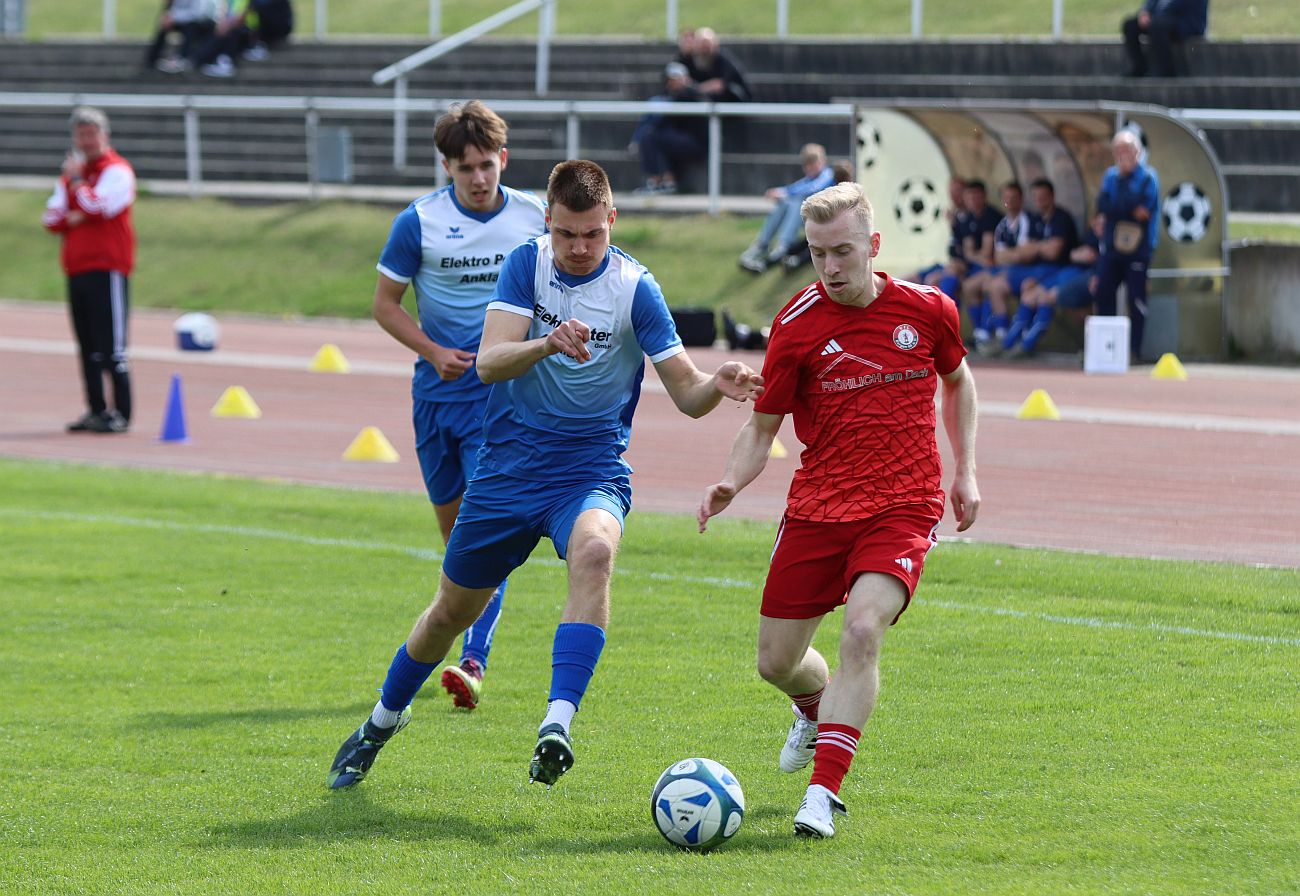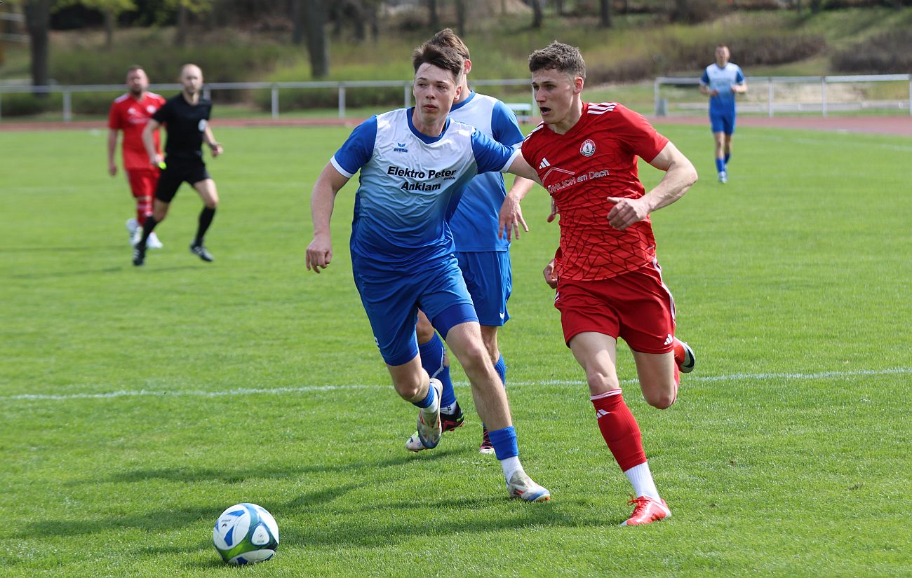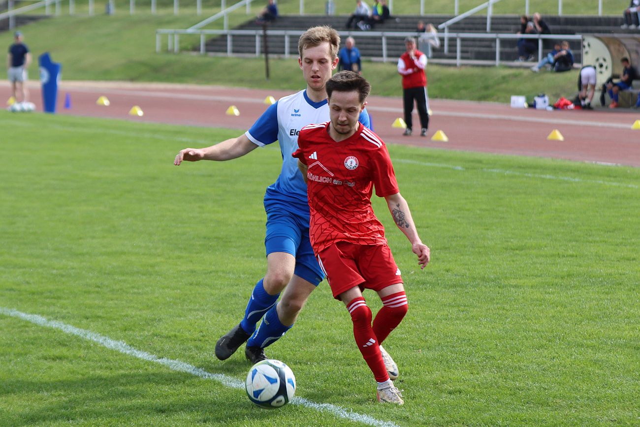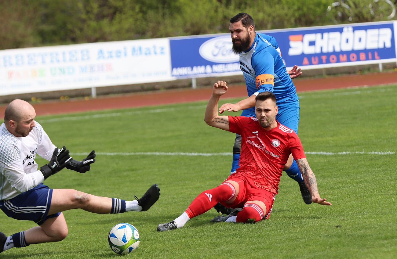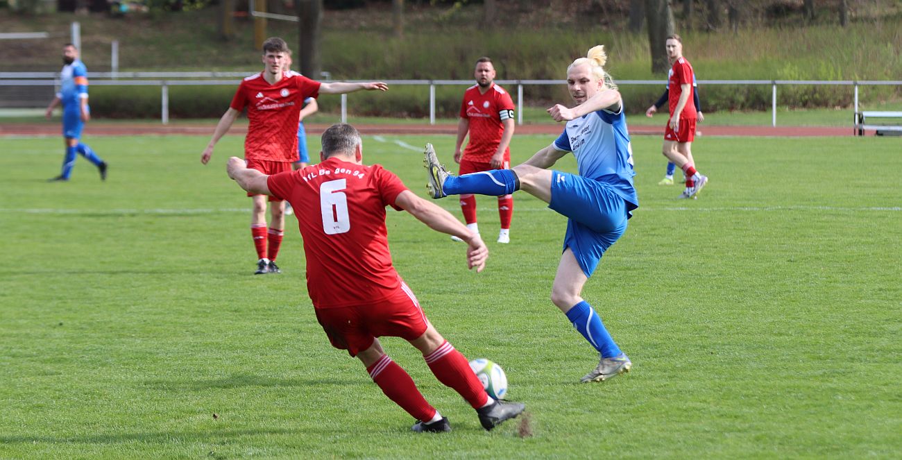Die Gäste aus Bergen erwischten einen Traumstart. Schon nach 30 Sekunden nutzte Marc Klöckner einen Abpraller nach einer zunächst ungefährlichen Flanke zur frühen Führung. In der achten und neunten Minute schlug der Torjäger erneut zu und sorgte mit einem Hattrick für klare Verhältnisse auf der Anzeigetafel. Doch unsere Mannschaft ließ sich davon nicht aus dem Konzept bringen. „Es ist natürlich schwer, wenn man so früh 0:3 hinten liegt. Wir haben danach aber eine starke Reaktion gezeigt, alles rausgehauen und den Spitzenreiter vor große Probleme gestellt“, erklärte Spielertrainer Tom Fraus. In der 14. Minute verhinderte Tim Kietzmann im Eins-gegen-eins gegen Klöckner zunächst sogar das 0:4, ehe er wenig später selbst den Anschlusstreffer einleitete. Nach seinem Abschlag und einer Vorlage von Philipp Sorgatz traf om Fraus zum 1:3 (15.). In der Folge entwickelte sich eine intensive Partie mit Chancen auf beiden Seiten. Während die Gäste weitere Möglichkeiten liegen ließen, verpassten auch unsere Kicker mehrfach den nächsten Treffer – unter anderem durch Maximilian Paul und Jan-Patrick Bruhns.