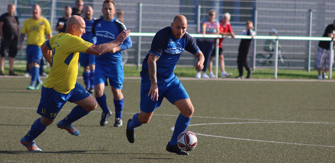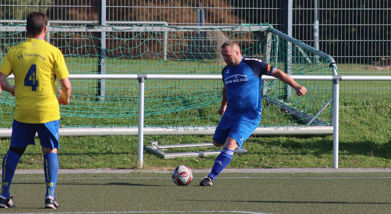 In Torlaune haben sich unsere Ü35-Kicker am dritten Spieltag der Kreisliga-Saison präsentiert. Sie zündeten auf eigenem Rasen im Kreisliga-Derby gegen den SV Ducherow ein echtes Offensivfeuerwerk und gewannen deutlich mit 11:0 (7:0). Dabei eröffnete Marcel Christen bereits in der vierten Spielminute den Torreigen. Sandro Gebauer traf in der Folgezeit gleich fünfmal. Die weiteren Tore erzielten Christian Müller-Hasselmann (2), Michael Jeske, Martin Hahn, David Schulz und Andreas Piehl. Am kommenden Freitag tritt unser Ü35-Team ab 18:30 Uhr beim FSV Einheit Ueckermünde an.