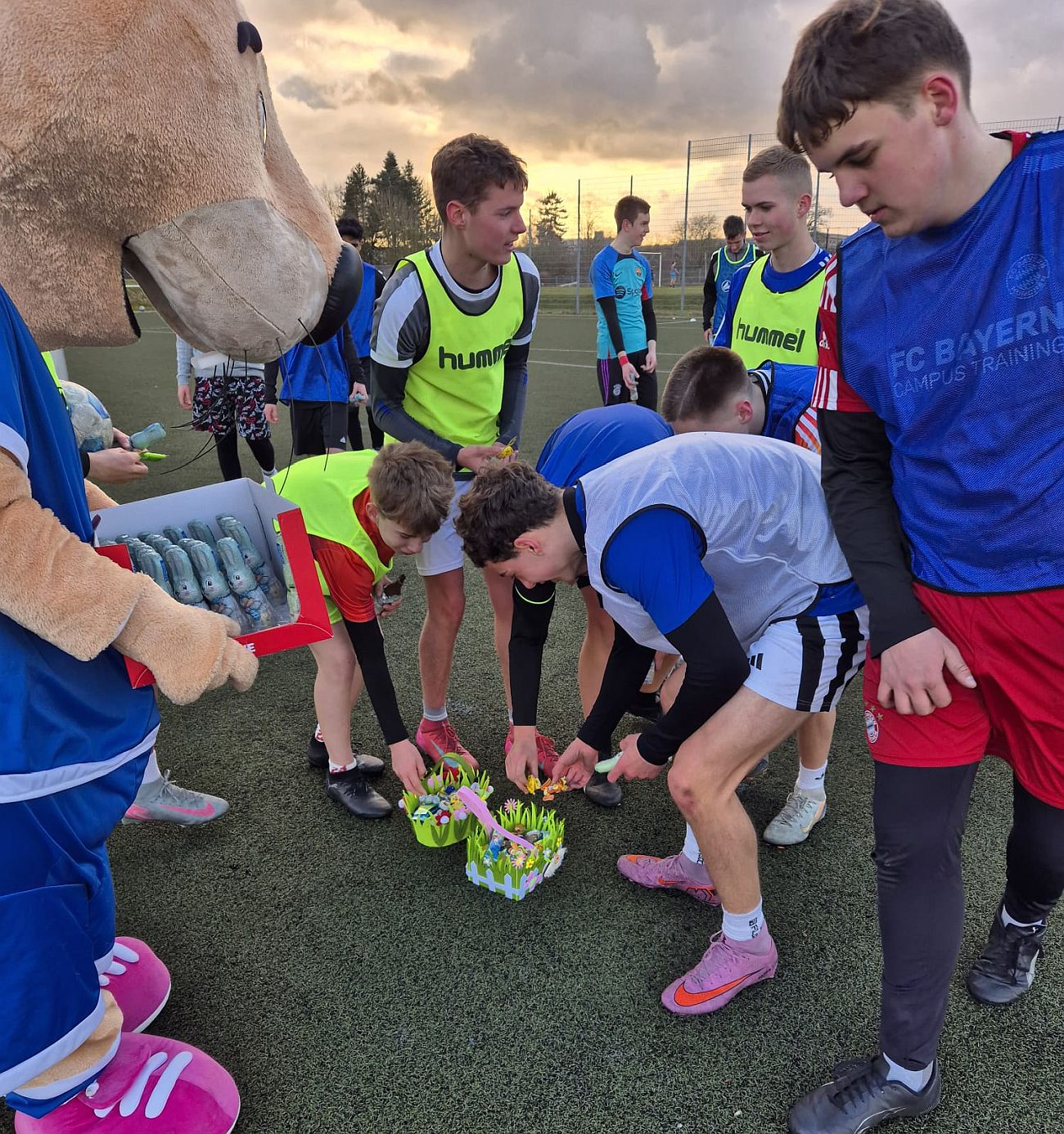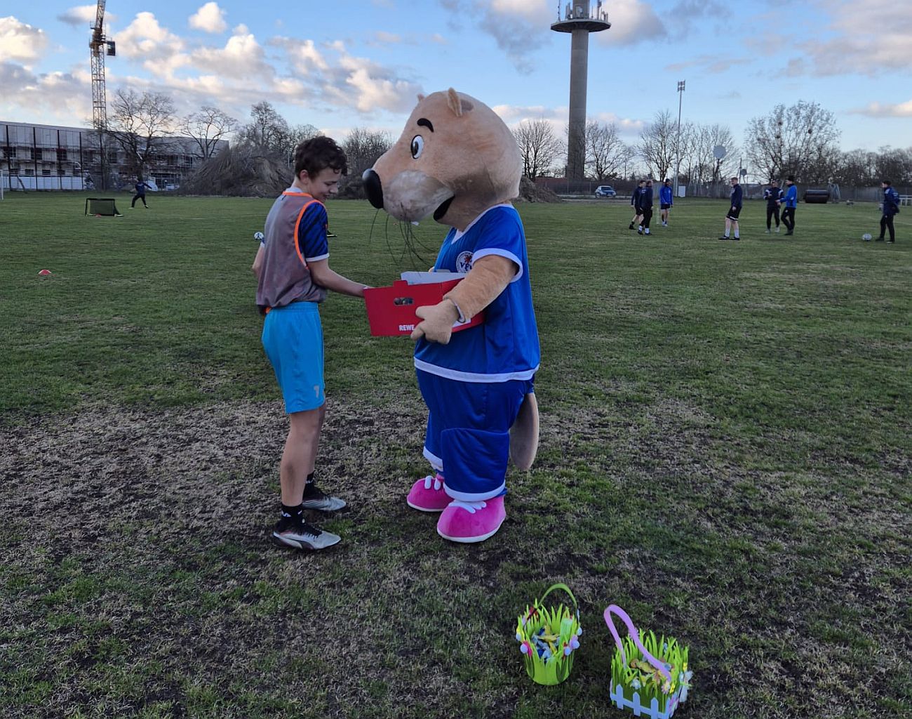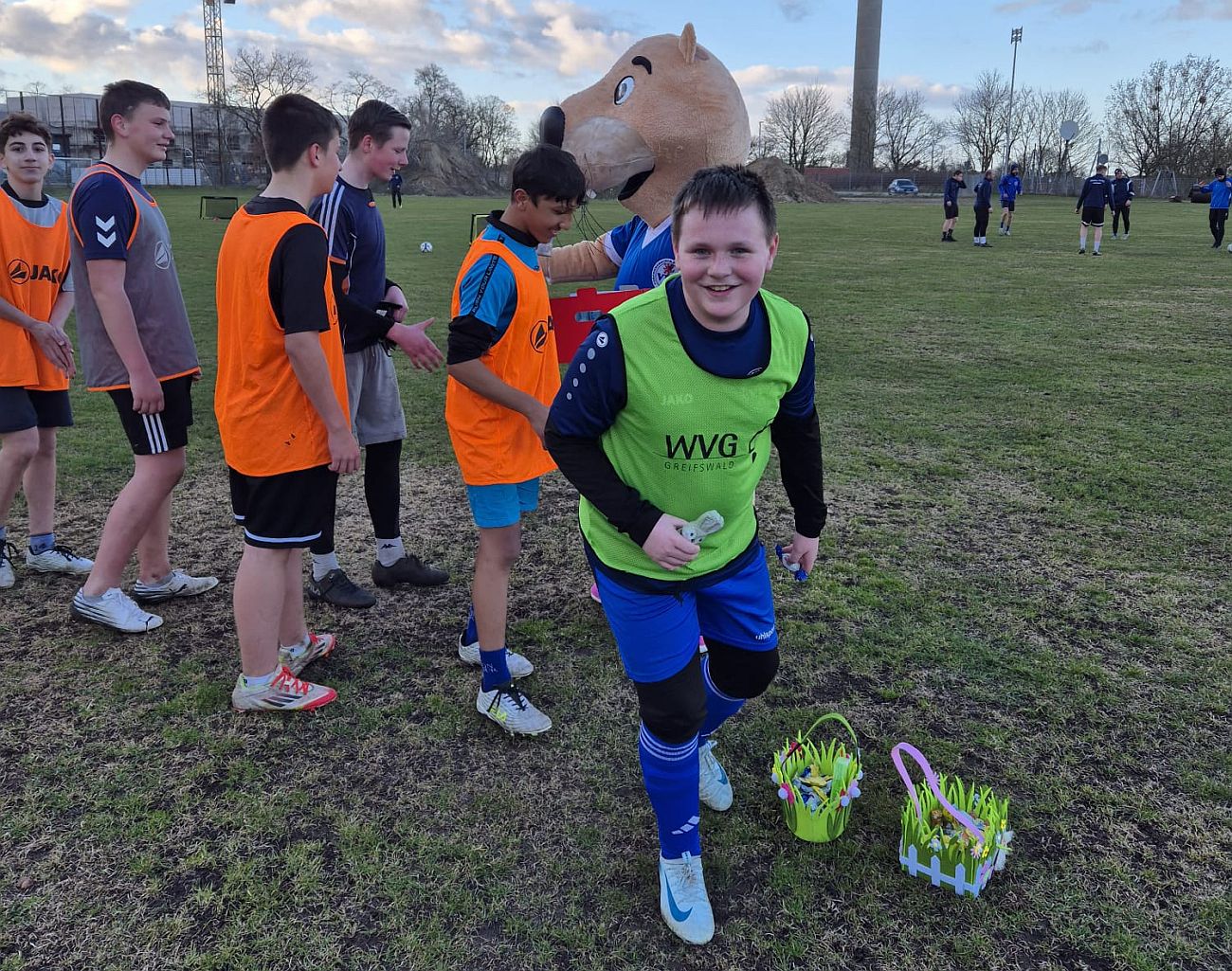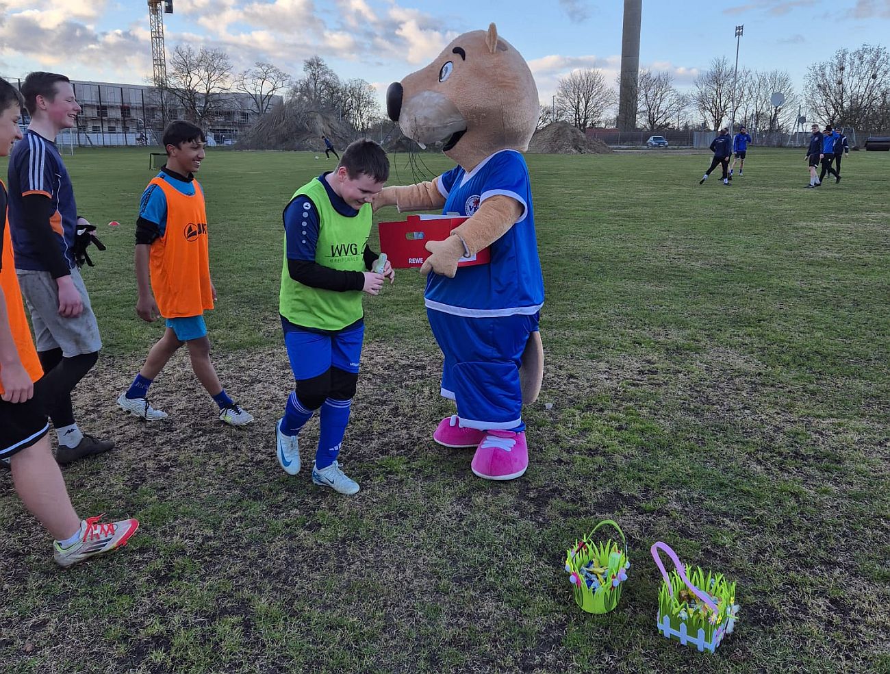 Unser Vereinsmaskottchen „Otto“ ist im Laufe dieser Woche in eine ganz besondere Rolle geschlüpft: Er fühlte sich wie ein echter Osterhase und überraschte die Mannschaften während ihres Trainings mit einem Besuch. Für die Nachwuchsteams hatte er einen Korb voller Süßigkeiten vorbereitet, doch auch die Herrenmannschaften gingen nicht leer aus – für jede Mannschaft brachte er einen Kasten Bier mit. Die Freude war bei allen riesig und sorgte für beste Stimmung auf dem Platz. In den kommenden Tagen möchte Otto auch die übrigen Teams besuchen und hat bereits jetzt für alle noch eine Menge Überraschungen im Gepäck.